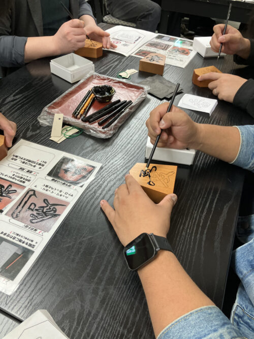 書駒体験に挑戦!思った以上に難しく、皆で苦戦しながら楽しみました。